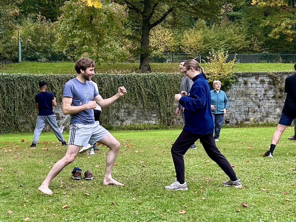 Zondagmorgen startte sportief met een morning workout, gevolgd door een stevig ontbijt. De duo-activiteit van de dag bracht iedereen weer samen: een familietraining in de kasteeltuin of een ontspannende wandeling met Peppo.