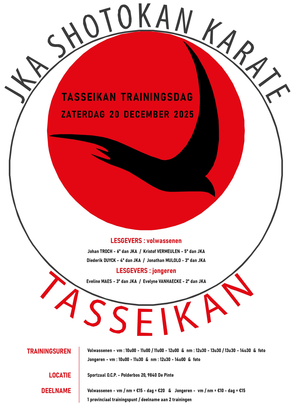 Met ontzettend veel zin en energie nodigen we jullie uit voor onze Tasseikan trainingsdag op zaterdag 20 december 2025 โ hรฉt moment om samen het sportieve jaar in stijl af te sluiten!